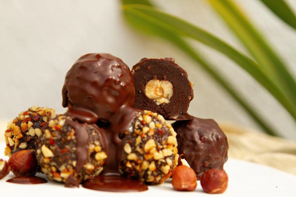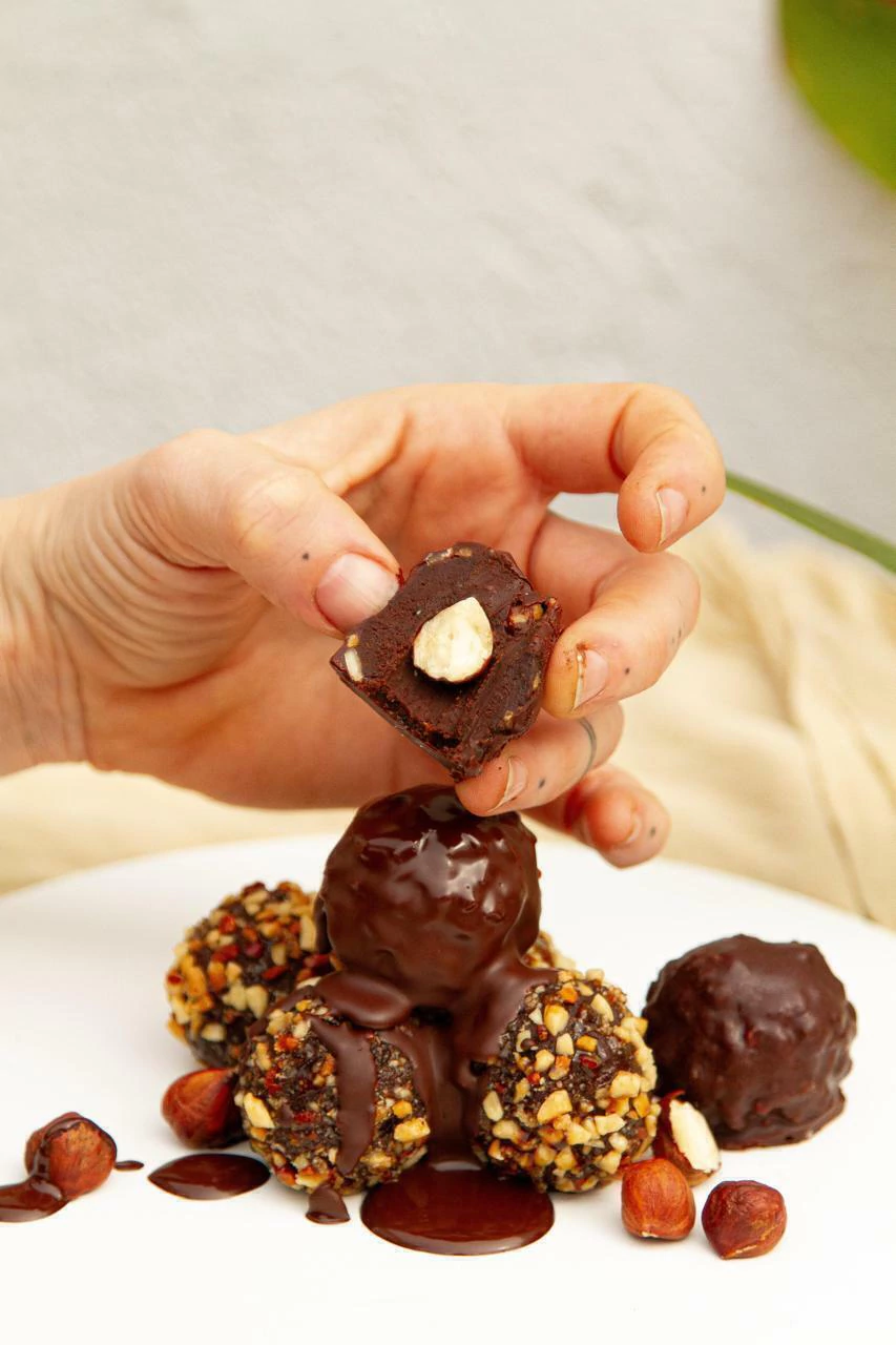 3 bombones de RAWtella casera hecha a base de avellanas y cacao amargo al 80%
